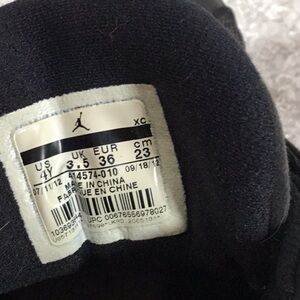 These Jordan sneakers feature a bold black and red design, crafted with a combination of mesh and leather for durability and style. The iconic Jumpman logo in red stands out against the sleek black upper, while the high-top silhouette offers classic basketball appeal. Perfect for those who value both performance and fashion on the court. These are missing the inserts. Please see photos for any cosmetic issues.