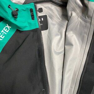 The Air Jordan Utility Gore Tex Jacket in Men's size L is a stylish and functional outerwear piece perfect for outdoor activities or casual wear. Made from polyester with a water-resistant design, this multicolor colorblock jacket features a long length, zip closure, and a loose fit for added comfort. The jacket also includes a hood, pockets, and the iconic Jordan logo accents, making it an ideal choice for the winter, fall, or spring seasons.
