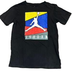 Great looking Air Jordan T-shirt for youth! This shirt is black with the Air Jordan logo on the front. It's in great condition and ready for a new home. Make a statement with this awesome tee! Don't miss out - grab it now!
