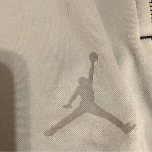 Air Jordan boys size large gray sweatpants side pockets 1 back pocket Jordan and thermafit logo worn off drawstring and elastic waist