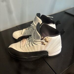 Stylish Jordan athletic shoes. Classic black and white design. Perfect for sports and casual wear.