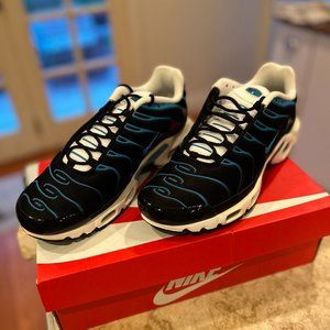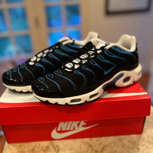 Black/ Laser-Blue White Mens Air Max Plus Sneakers