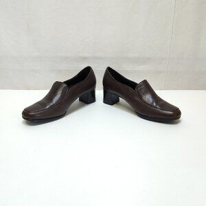 Air Supply Plus Dress Leather Shoes Brown Slip-On Comfort Heel Womens Size 6M