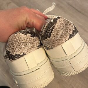 Snakeskin Air Force ones. Bought them from the SNKRS app. Worn a few times, but in really good condition. I recently washed them and they turned out really clean! Women’s size 10