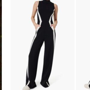 AirEssentials Womens Stripe Sleeveless Jumpsuit Black White Track Sz 1X NWT Boho