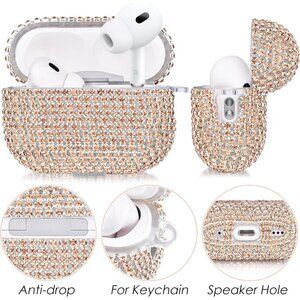 AirPod Pro 2nd Gen Bundle Rhinestone Case Leopard Decals Anti Slip Ear Hooks