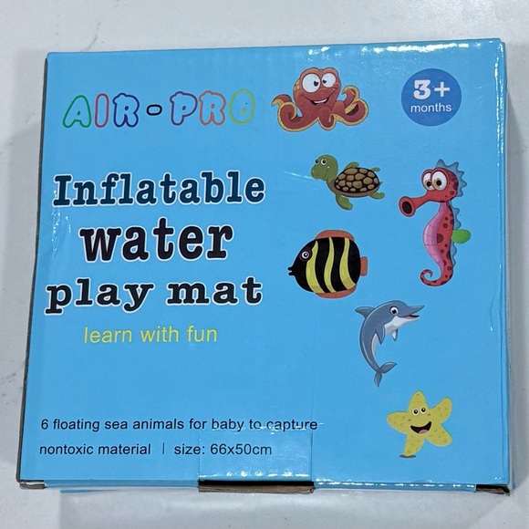 Fun inflatable water play mat with sea animal designs. Perfect for babies 3 months and older. Great for tummy time. Brand new.