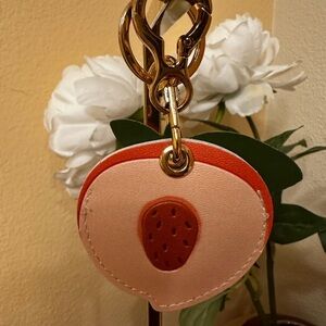 Bright orange peach design. Gold-tone hardware. Perfect for adding a pop of color. AirTag holder - AirTag NOT included.