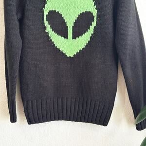 Specific/Style: Pull-over, crew neck, chunky knit, extraterrestrial graphic on the front, made in Portland OR, Punk