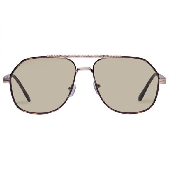 • Bright gold frame featuring on trend khaki tint lenses