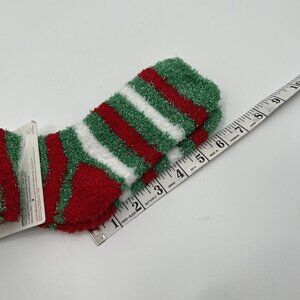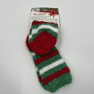 New with tags, fits shoe sizes 5-11. Infused with aloe and vitamin e. Red green white stripes striped with silver sparkle.
