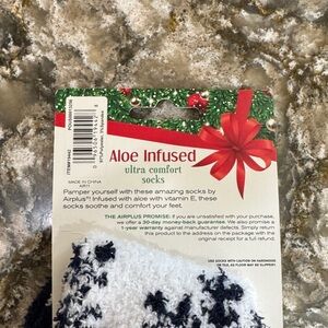 Experience ultimate comfort with Airplus Aloe Infused Ultra Comfort Socks. These cozy socks feature a stylish black and white design, infused with aloe and vitamin E for soft, warm feet.