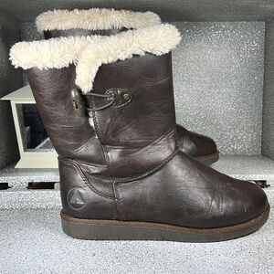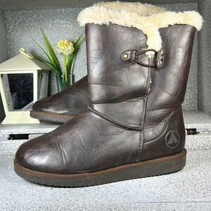 Airwalk Brown Faux Leather Faux Fur Lined Winter Snow Rain Boots Shoes Vegan 8