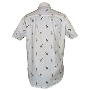 Airwalk Button Up Shirt Men L White Pocket Print Giraffe Aop 100% Cotton.#32978