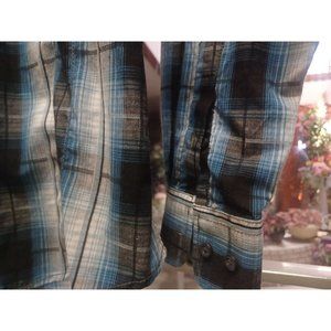 Airwalk Men's Button-Up Shirt Long Sleeve Small Turquoise Plaid 55% Cotton 45% Polyester 2 Front Double Pockets with Black Accents