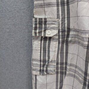 Versatile and lightweight plaid cargo shorts designed for casual and outdoor wear. Features multiple pockets for convenience and a classic button closure.