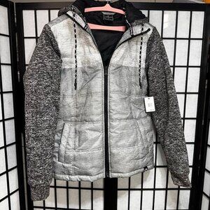 Airwalk Mens Hooded Jacket Gray & White Size S Puffer Quilted NWT MSRP $89
