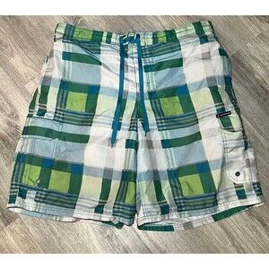 Airwalk Mens Trunks Swim Shorts Green Checkered Drawstring XXL