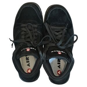 These Airwalk Mongo Mid Composite Toe Suede Work Sneakers in Black are a Men’s 8.5 Wide/EE (Style AW6350). These are in great condition. As is common with black suede, there’s a bit of discoloration at the uppers, but the insoles and outsoles are in very good condition.