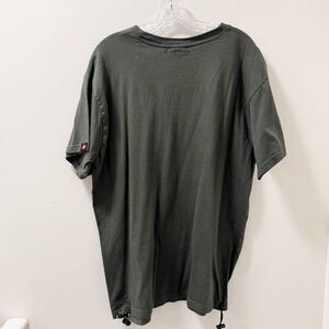 Experience comfort and style with the Green Men's T-Shirt. Features graphic on left side and drawstring hem.