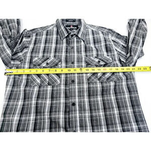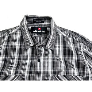 Airwalk Size Medium Men's Gray Check Logo Tag Long Sleeve Dual Pocket Shirt
