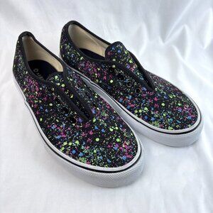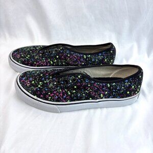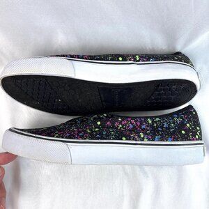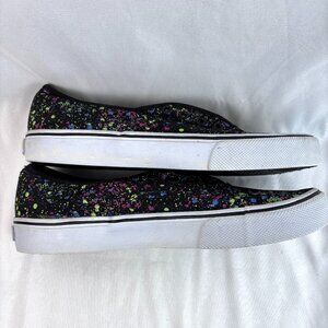 Airwalk Slip-On Sneakers Women’s 7 Black Multicolor Neon Paint Splatter Skater