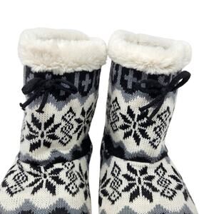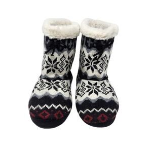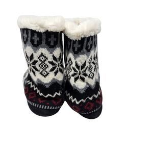 Airwalk Snow Flake Print Comfy Hard Soled Slipper Ankle Boots Faux Fur Size 9-10