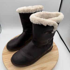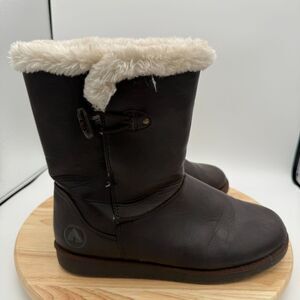 Airwalk Winter Boots Womens 10 Brown Faux Leather Fur Lined Preppy Toggle