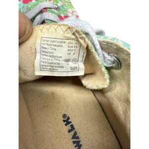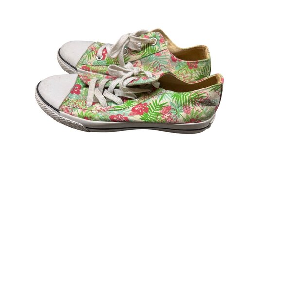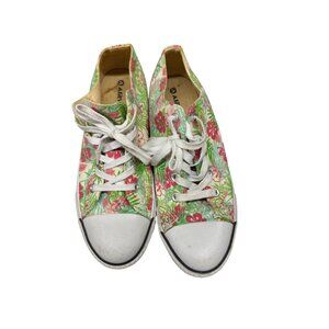 Airwalk Womens Floral Canvas Sneakers Size 10 White/Green With Pink Accents (174
