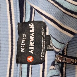 Airwalk x Forever 21 Cropped Zip Up Top in dark and light blue stripes w