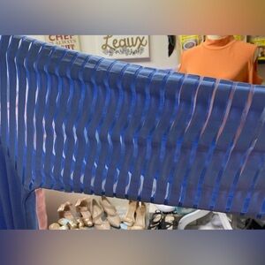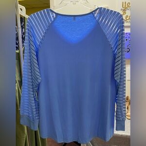 Aisew blue, long sheer striped sleeve, V-neck, shirttail him lightweight top. Various sizes very cute. NWOT