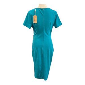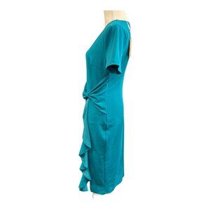 Aisire Vintage Redefined Dress Womens M Teal Chiffon Midi Faux Wrap Waist Ruffle Wedding Guest