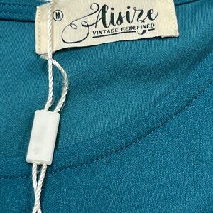 Aisire Vintage Redefined Dress Womens M Teal Chiffon Midi Faux Wrap Waist Ruffle