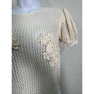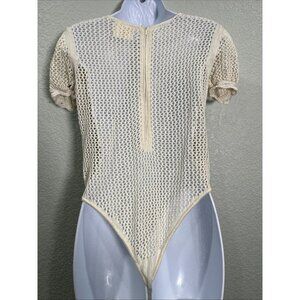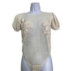 Ajaie Alaie Bodysuit Womens M Ivory Crochet Floral Sheer Beach Festival Mermaid