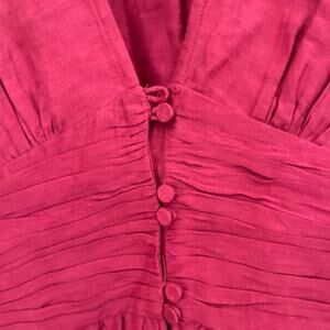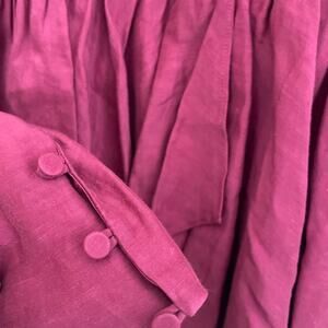 Elegant deep red blouse with a V-neckline. Features long sleeves and a fitted waist. Perfect for a chic look.