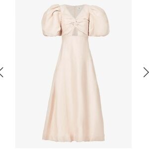 Aje Dusk Knot Cutout Puff Sleeve Linen Blend Midi Dress in blush AU size 4 or US size 0