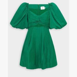 Aje Dusk Puff-Sleeve Minidress in Emerald Green