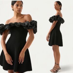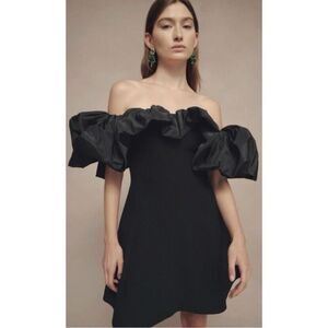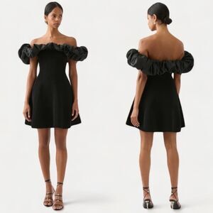 Aje Eldora Off the Shoulder Black Ruffle Mini Dress Size Small