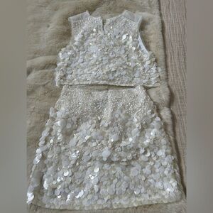 Aje Ivory Sequin shell top & skirt. Top sz 6 bottom sz 8, selling as a set,mint