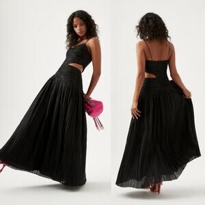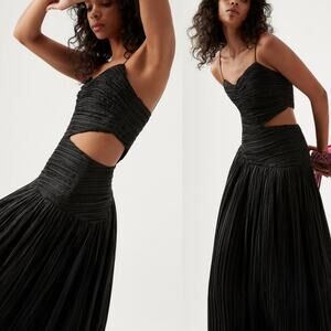 Aje Laurier Wave Maxi Dress Cutout Plisse Organza Black Gown Size 10 US NWT