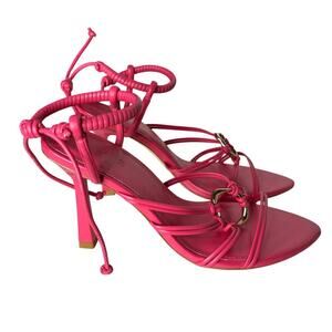 Aje Mirage Leather Strappy Heel Rouge Pink Size 8