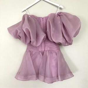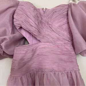 Cut in an off-the-shoulder puff sleeve silhouette and contrasted with a fitted ruched bodice, The Myriad Cut Out Mini Dress offers a fun modern statement perfect for events. Wear with sandals or heels.
