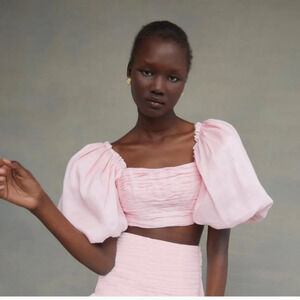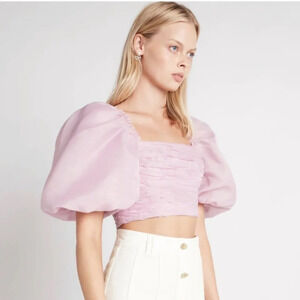 Aje, Myriad Putt Sleeve Cropped Top, Rose Pink, Size 4.