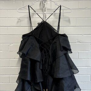 A vision of modern femininity, the Pandorea Layered Maxi Dress by Aje is the epitome of effortless elegance. Designed with a voluminous silhouette that makes a statement, this breathtaking gown features cascading layered ruffles that move with grace and fluidity. The halter neckline exudes refined allure, complemented by adjustable back ties for a custom fit. Whether worn to a garden soirée or a moonlit event, this piece promises to captivate from every angle.