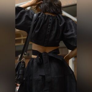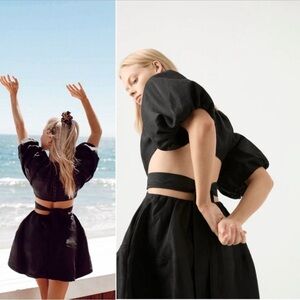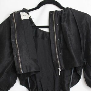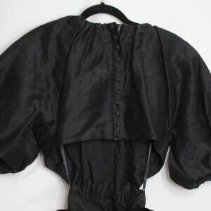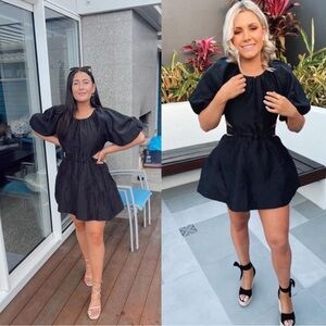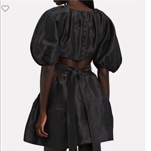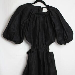 Aje Psychedelia Puff Sleeve Cut Out Mini Dress Tie Back Black Size Medium/8
