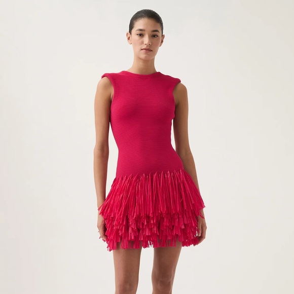 Aje Rushes Raffia Dress in fuchsia - Size M and NWT. Super cute and fun dress!