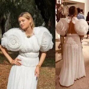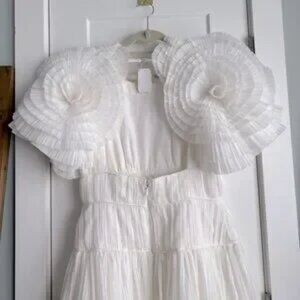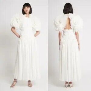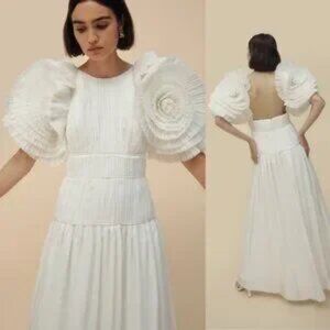 Aje Sculptura Expressive Pleated Organza Maxi Dress White Bridal NEW with tag