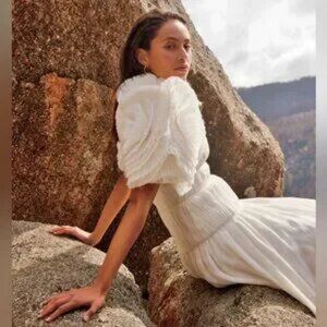 Fusing tough silhouettes with untamed volume, the Expressive Pleated maxi-dress from Aje epitomises the Australian brand’s dedication to raw beauty. A true statement piece featuring a pleated fitted-bodice that falls to an effortlessly relaxed maxi-skirt, it’s short-sleeves are embellished with voluminous, flower-like organza ruffles. + 100% polyester + Retails for $740 + Size AU 16 / US 12 Brand new with retail tag! Comes from smoke-free home.