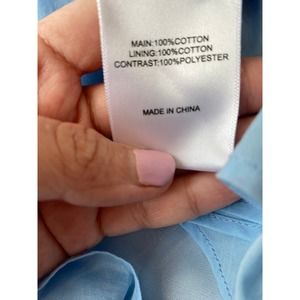 Details: 100% cotton, back buttons and zip, side cut out and ring embellishments, ruffled mini hem