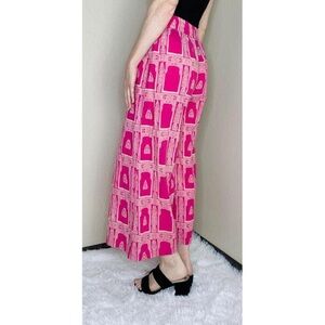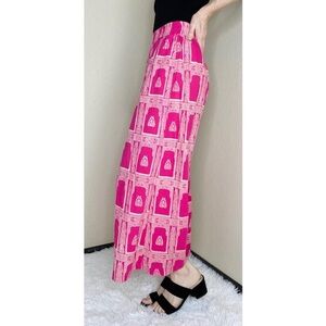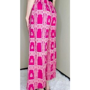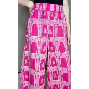 Ajio Pink & White Tapestry Printed High Rise Wide Leg Pants